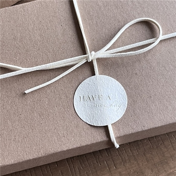 Etiqueta adhesiva en relieve texturizada de papel de algodón mate personalizado de lujo para embalaje de regalo